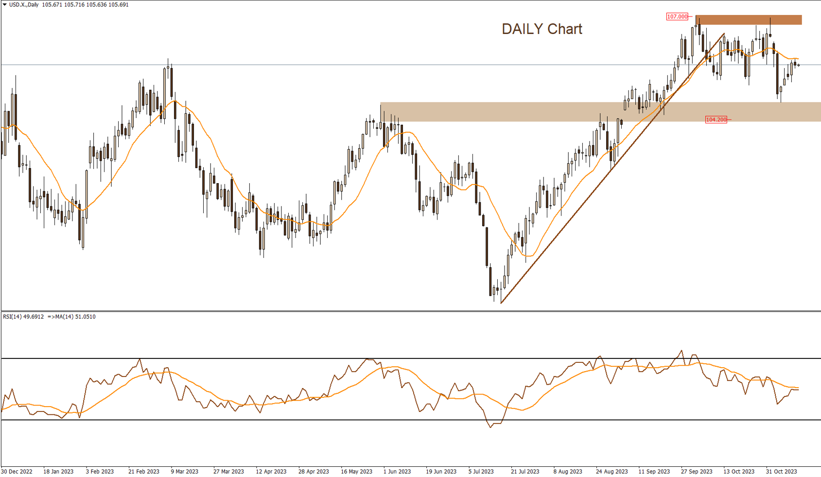 prices have broken below the support levels around 105.30, indicating a potential shift in the short-term trend from bullish to bearish. They are now facing another support zone in the range of 104.60-104.20, and as expected, the prices have tested and rebounded from these levels towards the upside. It is expected that these support levels will be tested again.