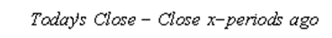 When the Rate-of-Change displays the price change in points, it subtracts the price x-time periods ago from today’s price: