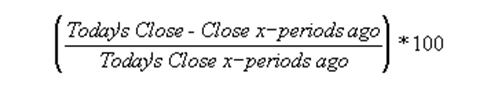 When the Rate-of-Change displays the price change as a percentage, it divides the price change by price x-time period’s ago: