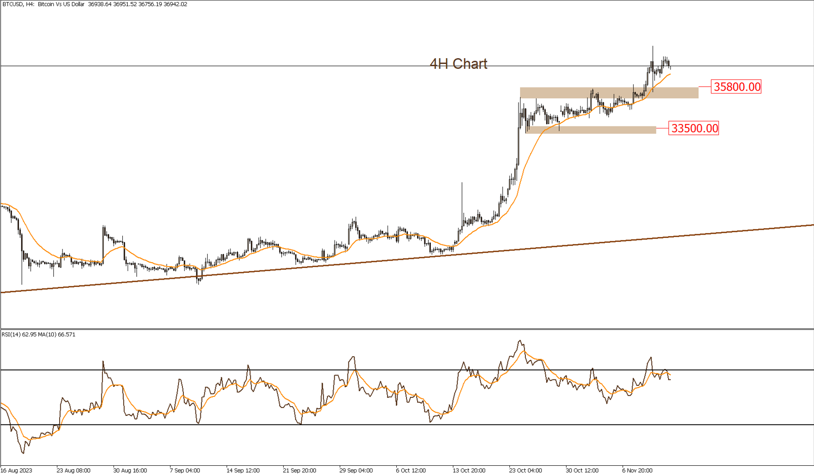 تتداول الأسعار فى إتجاه صاعد على المدى المتوسط و تم إختراق منطقة المقاومة الهامه 35800 مما يفتح الطريق لمستهدفات أخرى قد تصل الى ال 40000.