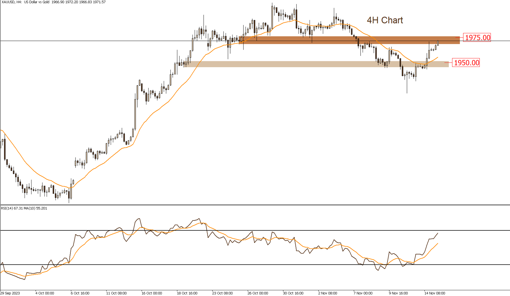 إرتفعت الأسعار حتى إجتازت المستهدف المتوقع سابقاً حيث تتداول قرب منطقة مقاومة فى نطاق 1975 و فى حاله إختراق هذه المقاومه لأعلى قد نستهدف 2000 دولار و ينتفى هذا السيناريو فى حاله كسر منطقة الدعم 1950 لأسفل.