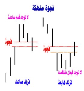 4- الفجوة المنهكةGap Exhaustion : وهى من أهم الفجوات . التى أن تم تمييزها بطريقة صحيحة فإنها تزيد من أرباح المتداول. أو تحميه من الخسارة.