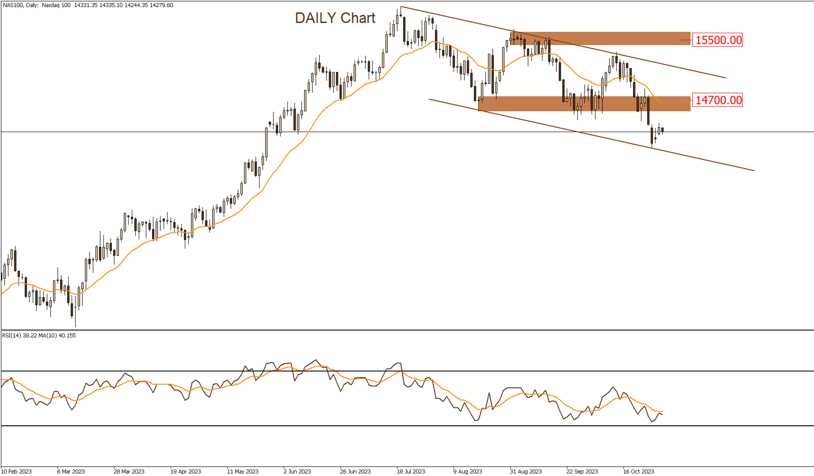 تتحرك الأسعار في إتجاه هابط على المدى القصير و فى حاله الإرتداد من الأسعار الحالية نواجه منطقة مقاومه فى نطاق 14550/14700 أما فى حاله كسر أقل أسعار خلال تداولات الأسبوع الماضى فى نطاق 14060 فسوف نستأنف المسار الهابط للأسعار .