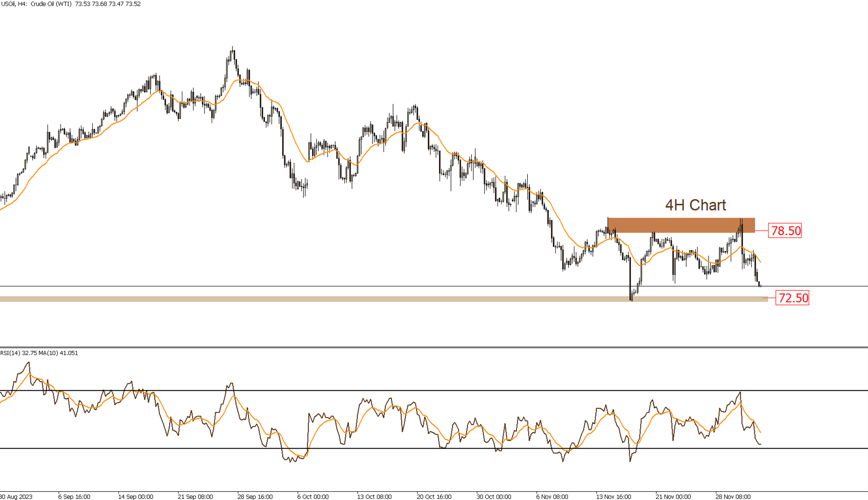 هبطت الأسعار من قرب منطقة مقاومة هامة فى نطاق 78.5$-$80 و إذا إخترقت الأسعار المقاومة السالف ذكرها لأعلى ستكون هذه أول إشاره لتغير الأتجاه الى صاعد على المدى القصير، أما إذا كسرت الأسعار منطقة الدعم الهامه 72.5 سنستأنف الأتجاه الهابط.