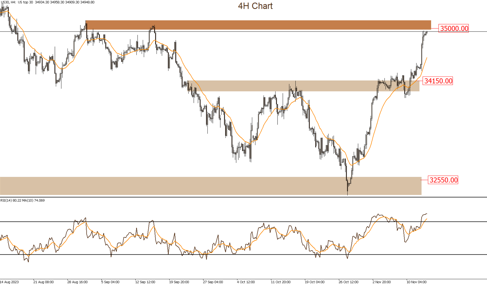 صعدت الأسعار بوتيرة سريعة فى تداولات أمس حتى وصلت الى مناطق مقاومه فى نطاق 35000 و قد تحد هذه المنطقة وتيره الصعود و فى حاله إختراقها لأعلى قد نستانف المسار الصاعد.