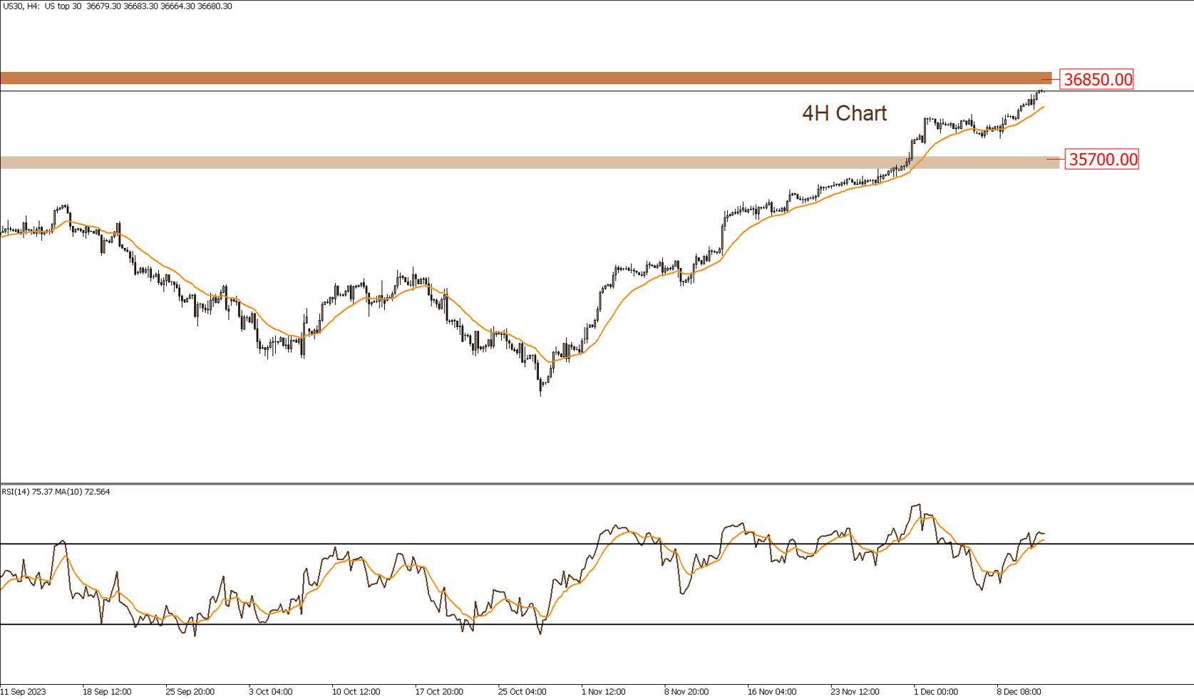 صعدت الأسعار حتى وصلت الى مستهدفات 36500 و فى حاله إستكمال الصعود قد تواجه الأسعار مقاومه حول القمة التاريخية لمؤشر ال داوجونز فى نطاق 36950.