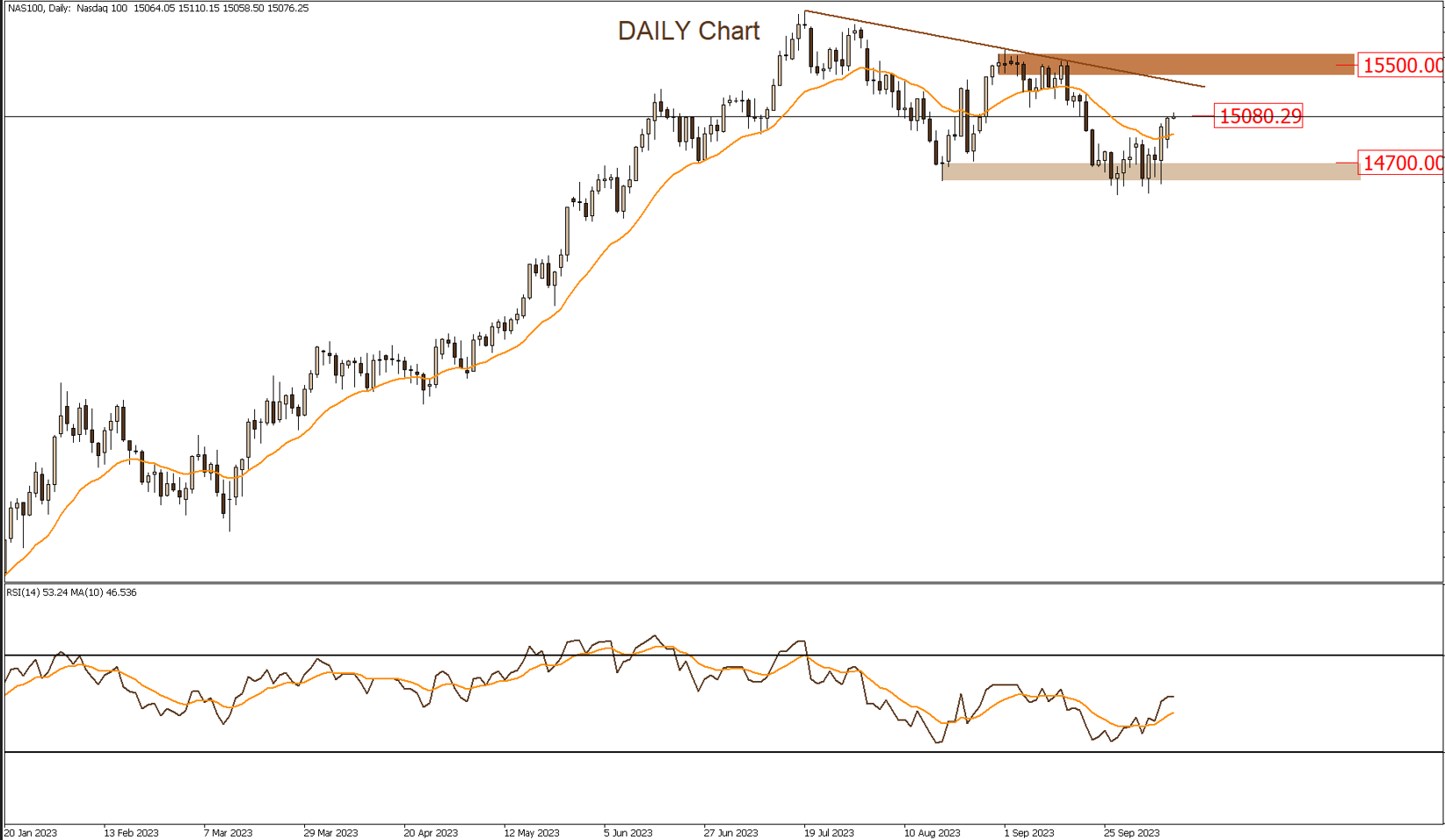 تتحرك الأسعار فى إتجاه هابط على المدى القصير حيث تمثل منطقه ال 14550 منطقه دعم حيث ظهرت قوه شرائية فى هذه المنطقة خلال تداولات الأسبوع السابق  و إستطاعت حتى الان الحفاظ على تلك المناطق و ليس من المتوقع اجتياز تلك المناطق لأسفل بسهوله  و مع الإرتداد من هذه المنطقة قد نستهدف القمة السابقة في نطاق 15500.