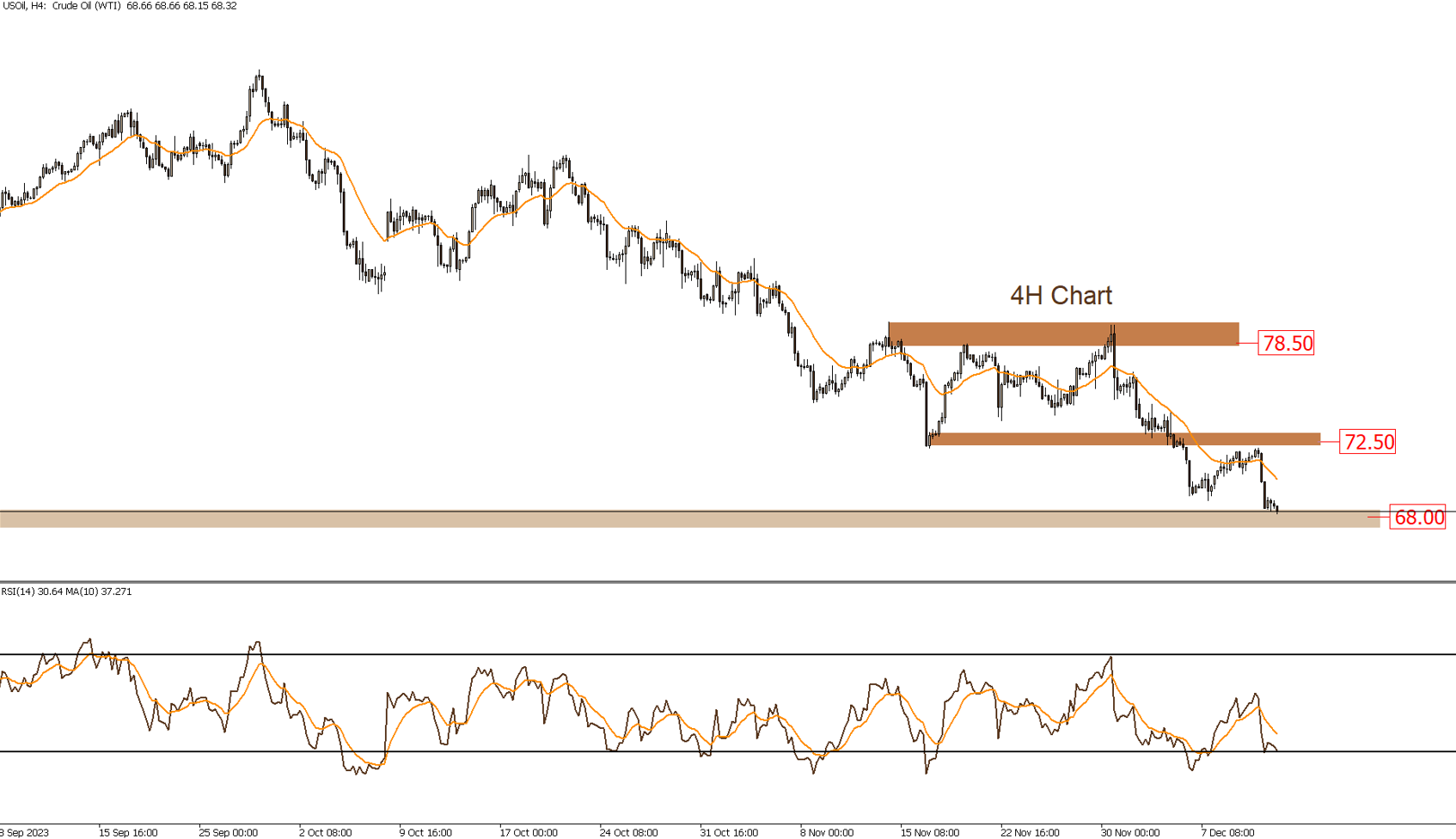 هبطت الأسعار من منطقة المقاومة الهامه فى نطاق 72.5 حتى وصلت الى مستهدفات 68$ ومن المتوقع أن تحد هذه المنطقة وتيره الهبوط.