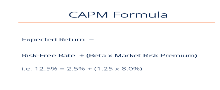 CAPM says that the expected return from a risky investment is equal to the risk-free rate (rf) plus a risk premium.