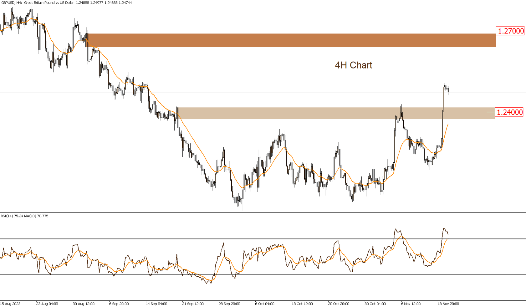 The price signals have indicated a potential shift in the short-term trend from bearish to bullish. This vision was confirmed with the break of the resistance level at 1.2380 . Prices may test the new support level within the range of 1.2400. However, if prices break above yesterday’s highs within the range of 1.2505, we may see a continuation of the upward trend.