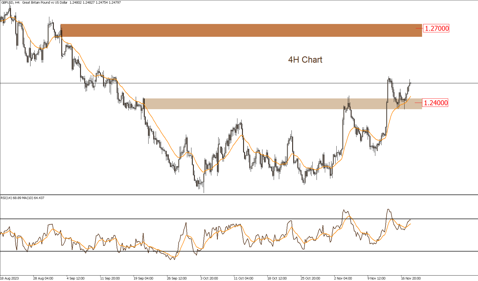 The prices are currently trending upwards in the short term, but they are facing a minor resistance around the 1.2505 range. If this level is breached, we may target the 1.2700 area.