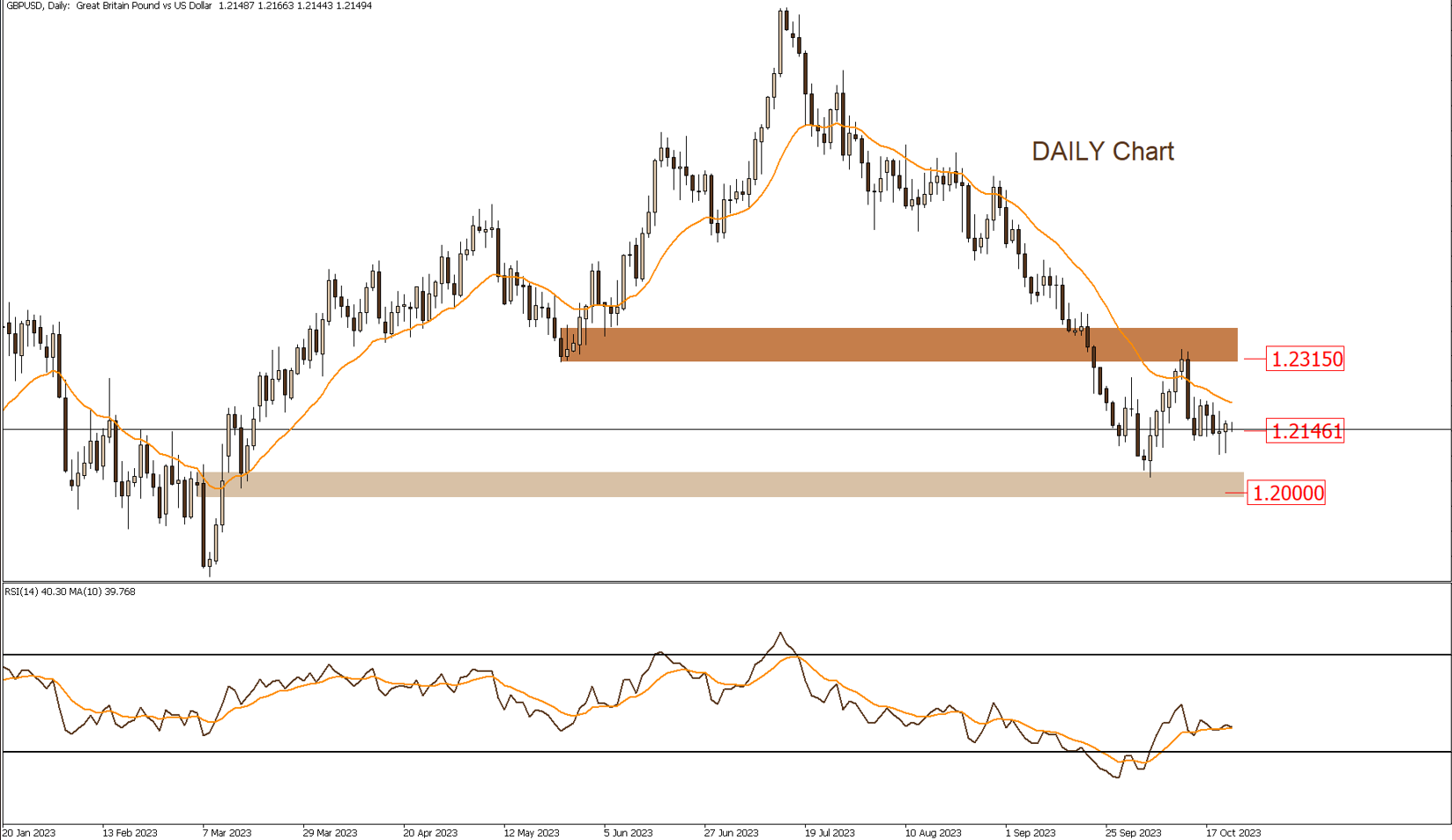 The prices are moving in a down trend in the short term, as they have declined from a significant resistance area in the 1.2350 range. It is expected that the support area will be tested again in the 1.2000 range.
