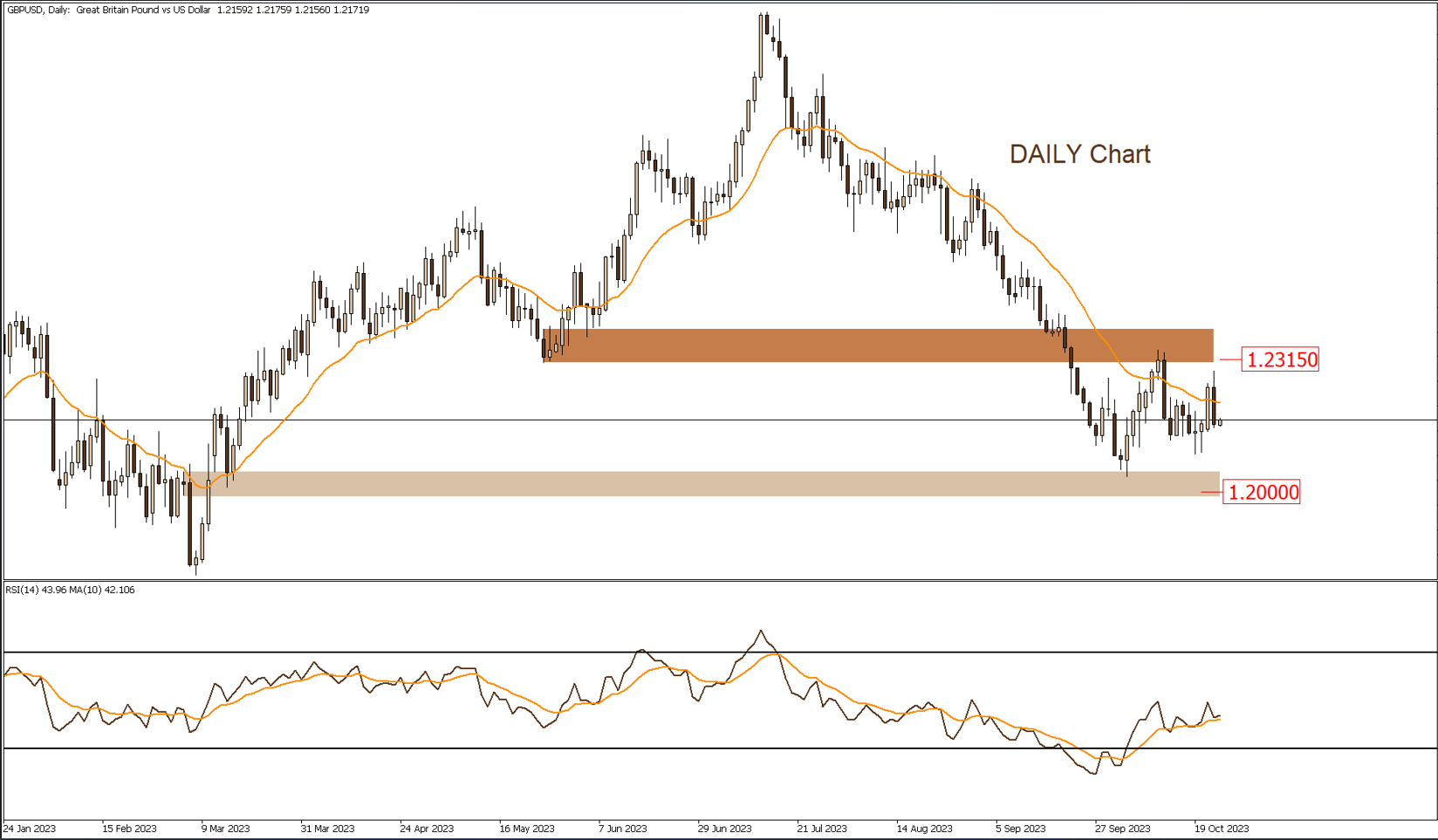 The prices are moving in a down trend in the short term, as they have declined from a resistance level around 1.2350. It was expected that selling pressure would appear in this area, limiting the upward correction. The prices may retest the support zone around 1.2000 again, this scenario could be invalidated if prices break above the previously mentioned resistance level.
