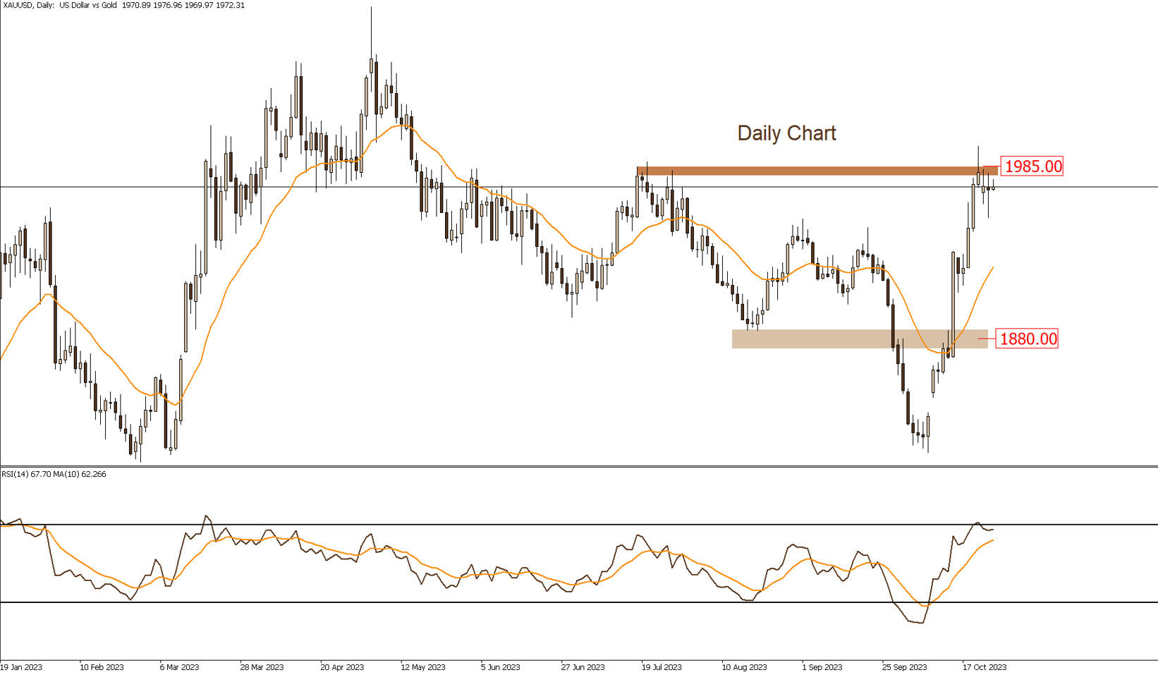 Last week, prices surged at a strong pace, breaking through a resistance zone within the range of 1940 and nearing the 2000 level. It is anticipated that there will be selling pressure in these areas, potentially slowing down the upward momentum. We may see a retest of the 1950 level, but this scenario could be invalidated if prices breakthrough 1985 range and sustained strength above it.