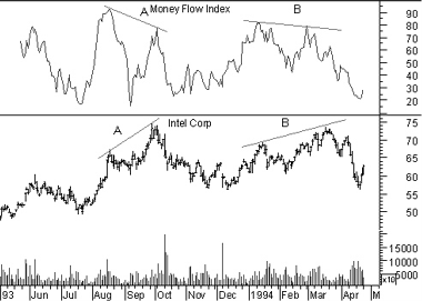 Example : The following chart shows Intel and its 14-day Money Flow Index.