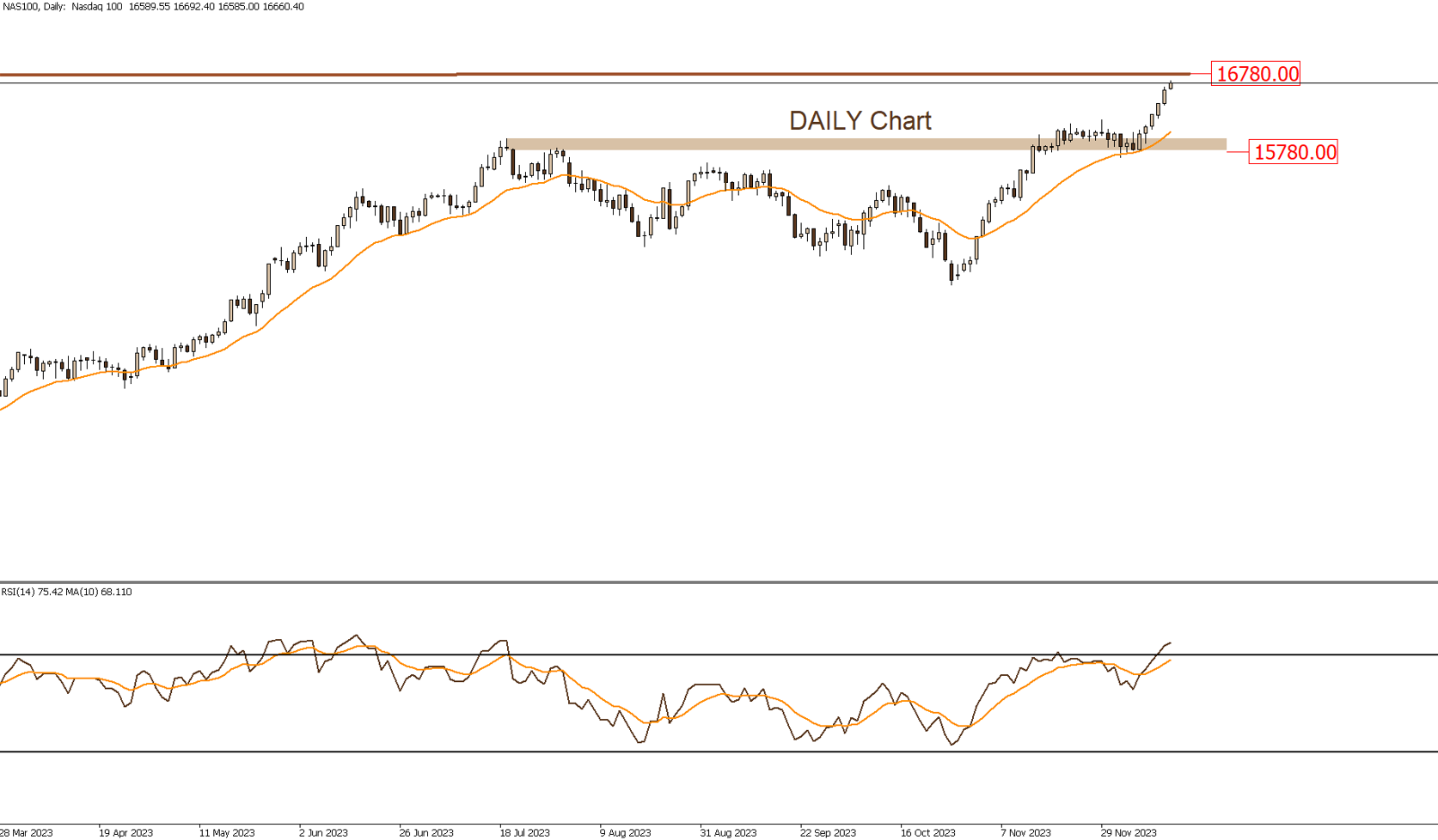 The current prices are trading above a key support area in the range of 15800-15870, indicating a potential target of the previous historical peak at 16780. It is likely that the pace of ascent may be hindered by this level.