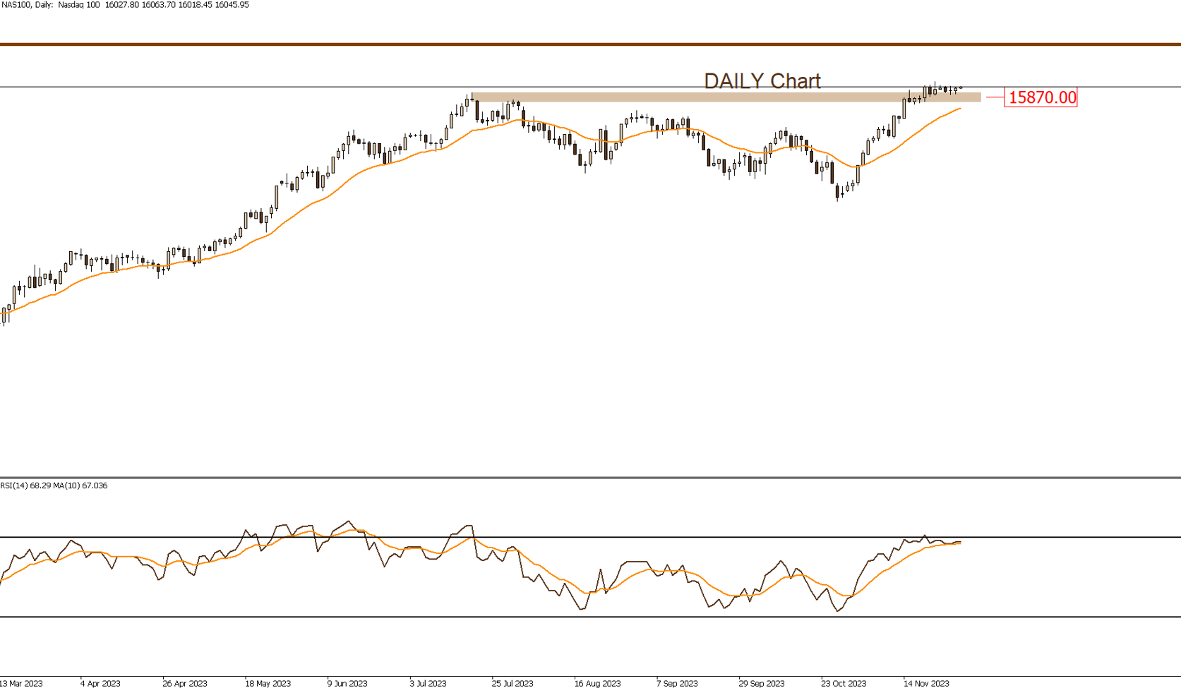 The current prices are trading above a support zone in the range of 15800-15870. If the index manages to hold above this level, it could potentially target its previous historical peak at 16780. However, this scenario would be invalidated if the support zone mentioned earlier is broken downwards.