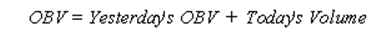 On Balance Volume is calculated by adding the day’s volume to a cumulative total when the security’s price closes up, and subtracting the day’s volume when the security’s price closes down.