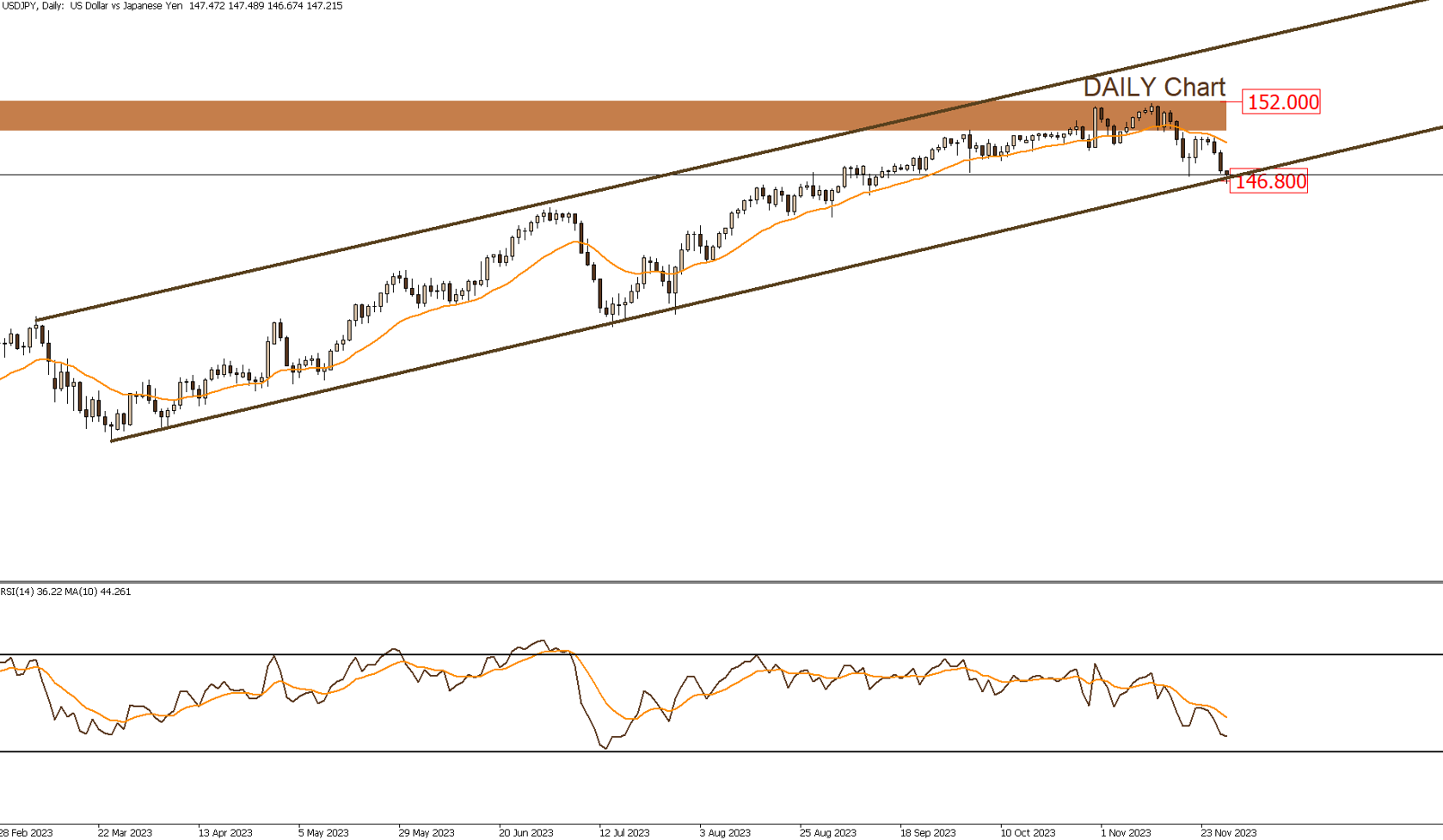 The prices have successfully tested the support area 147, it is expected that the prices will bounce back upwards. However, if the previously mentioned support area are broken downwards, we might witness a sharp decline.